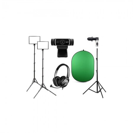 • [오토케] 게임방송 풀패키지/투스탠드 큐브라이트45 LED 조명 2개/로지텍 C922/탁스타 TS-451M 헤드셋/크로마키 배경
